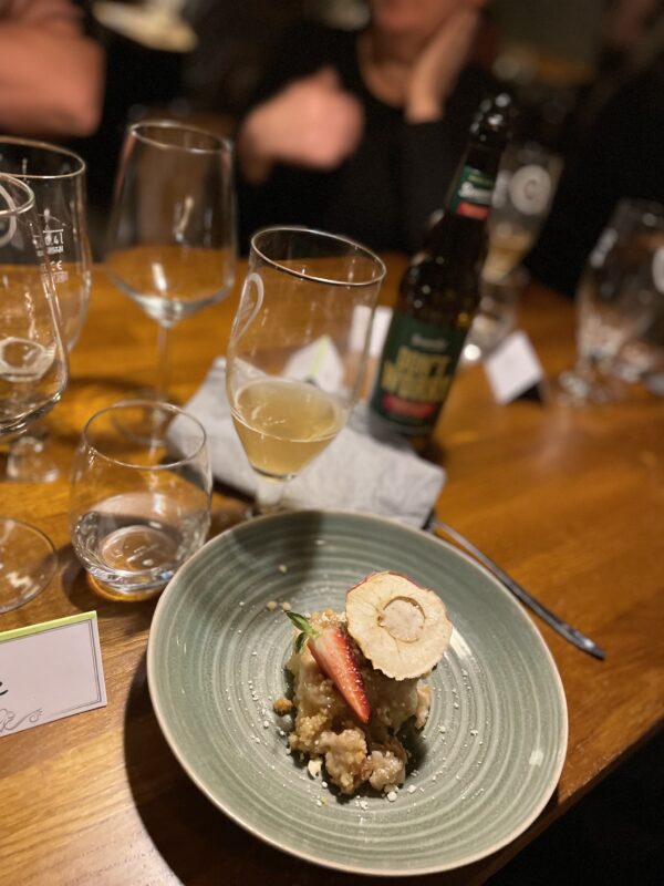 1.448 kr. inkl. velkomst champagne, 5-retters menu, gode vine, øl, drinks ad libitum og selskab.
